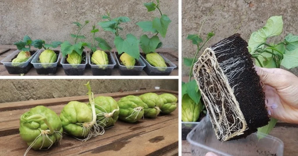 Lorsque le germe atteint 10 à 15 cm, la chayotte est prête à être plantée. Cette méthode de germination naturelle est l’un des secrets pour multiplier les plants sans effort.